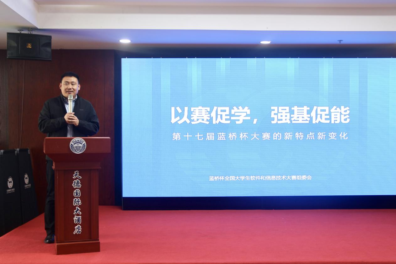 立足赛事发展前沿,蓝桥杯大赛组委会副秘书长单宝军聚焦本届大赛的新变化与新特点进行深度解读。他结合行业发展趋势,阐述了大赛在赛题设计、赛道设置等方面的优化升级思路,让在场嘉宾对赛事的发展脉络与未来格局有了清晰的认知,为高校参赛备赛提供了权威指引。
