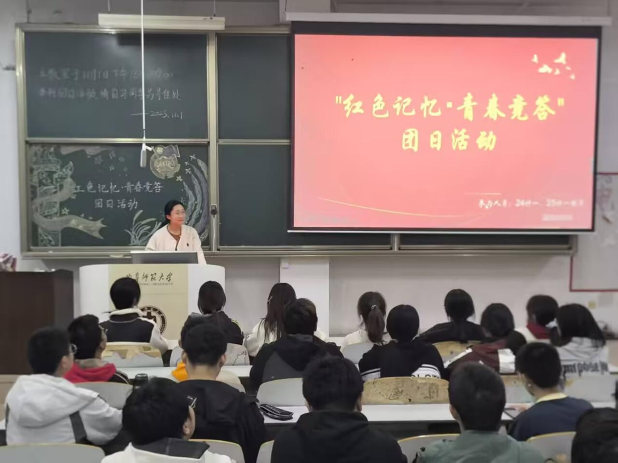 在JE201教室成功举办了“红色记忆・青春竞答”主题团日活动。24级计科一班和25级计科一班的全体团员参与活动。